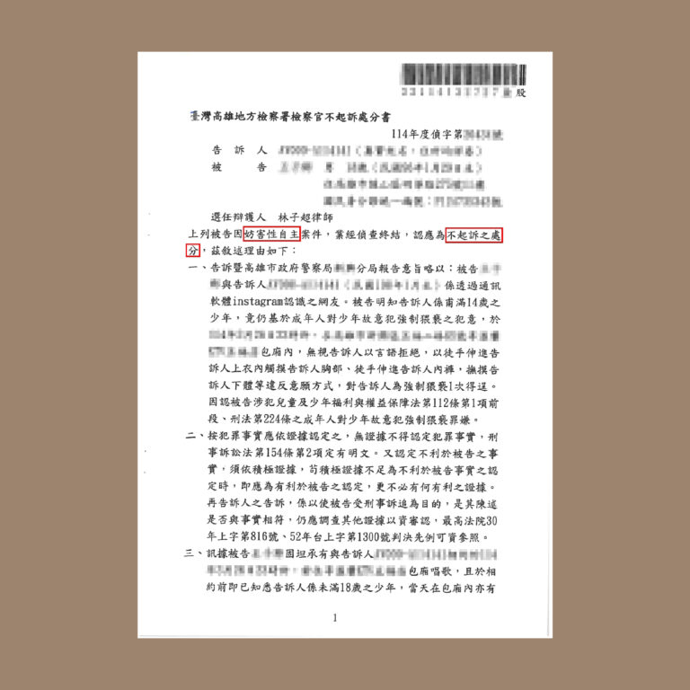 提供刑事告訴代理、被告辯護、律師接見、緊急陪同偵查等協助、傷害與過失傷害、妨害自由、妨害名譽、妨害性自主、妨害性隱私、偽造文書、侵占、賭博、詐欺、洗錢、吸金、銀行法、警示帳戶、證券交易法、個人資料保護、槍砲彈藥刀械、毒品、組織犯罪、著作權法、商標法事件、少年事件等